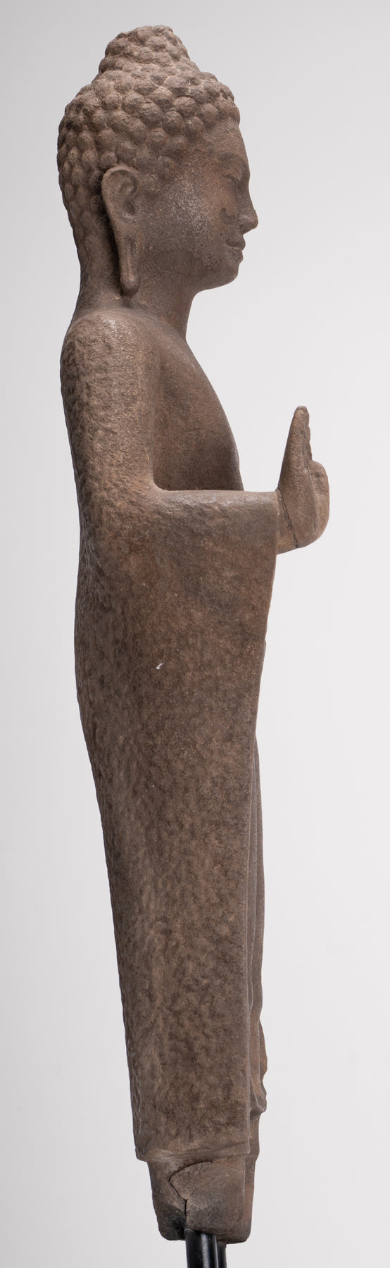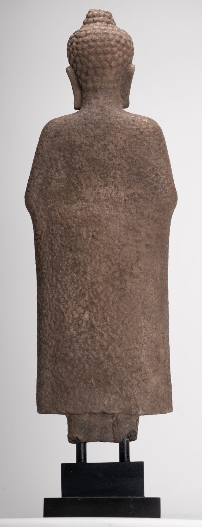 Un style thaïlandais antique du 11e siècle Bouddha debout en grès dans le style Dvaravati.